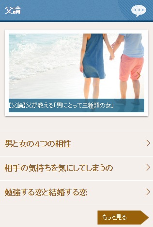 一番上に出ていた「男にとって3種の女」を見てみました。ここでは、基本的な男性とは・・・という内容が書かれていました。父の視点で語られる男の本音。女友達に相談していても得られない内容ですよね!